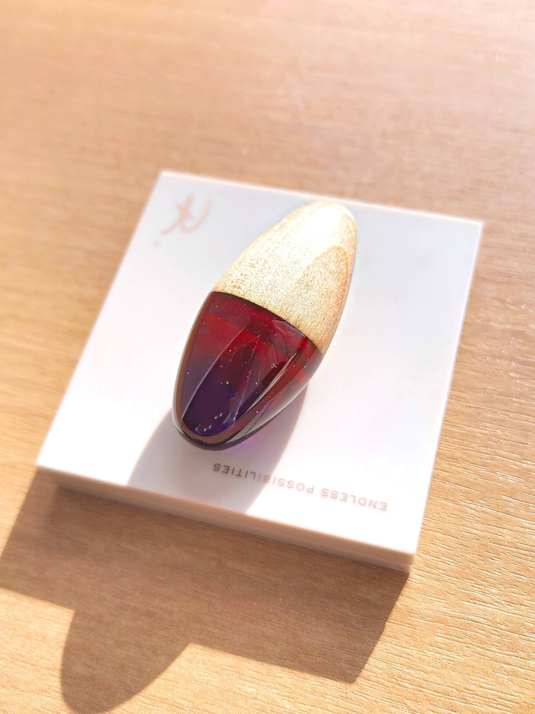 赤、紫を混ぜ合わせず自然のままに固めた怪しい色合いのレジン