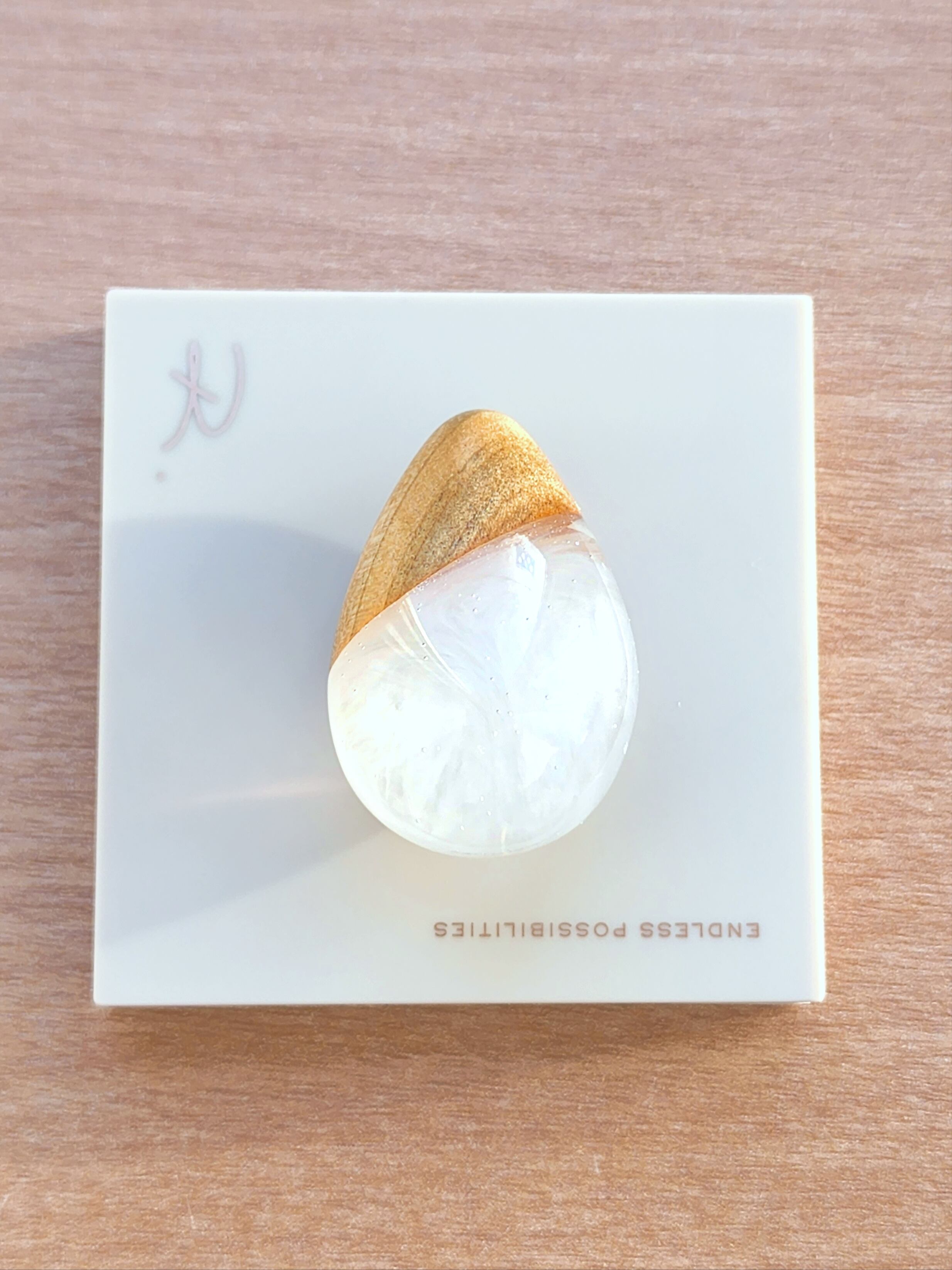 【一点物】栗の木のウッドレジンペンダント(白)