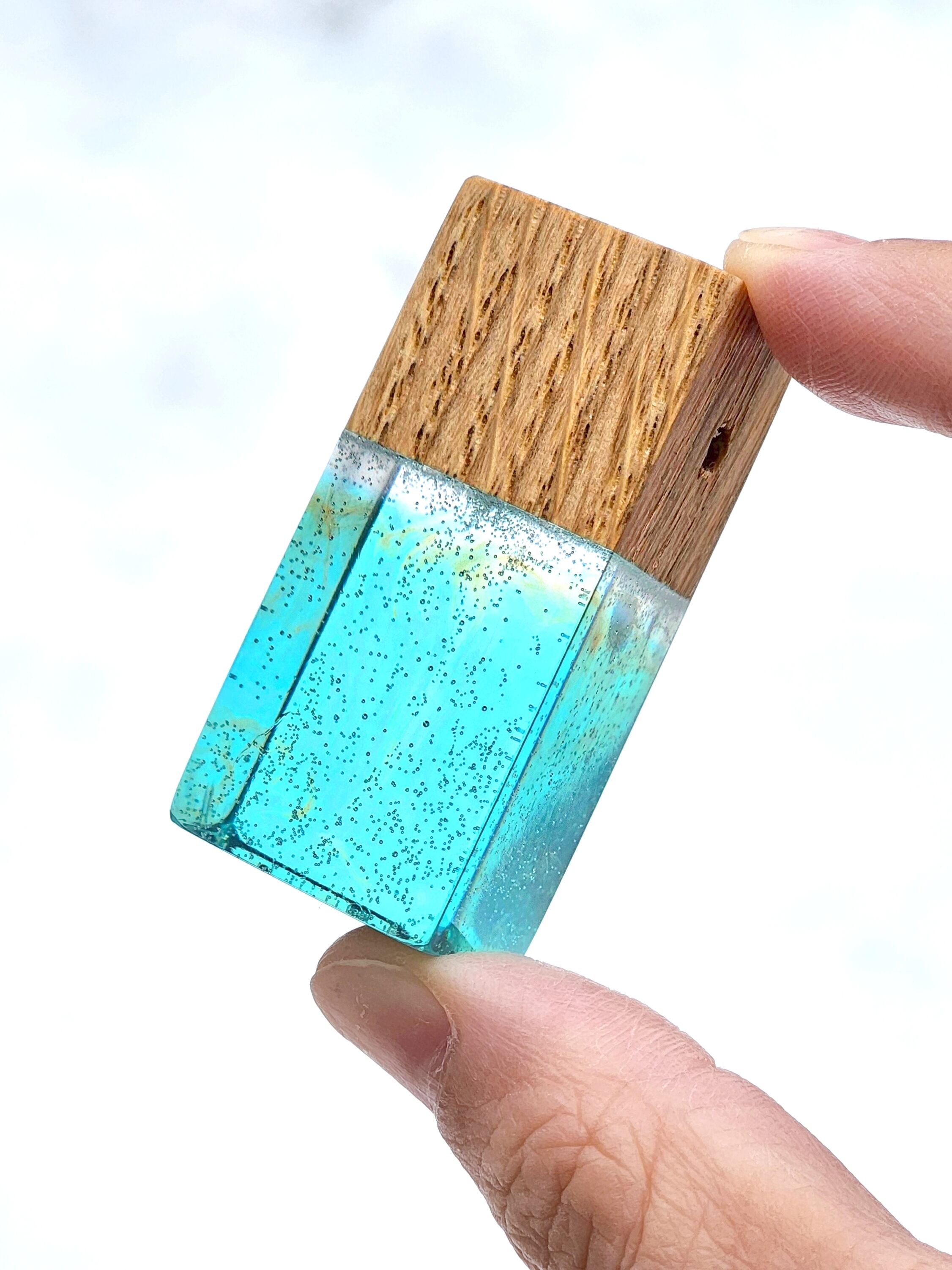 ナラの木を使ったウッドレジンペンダント