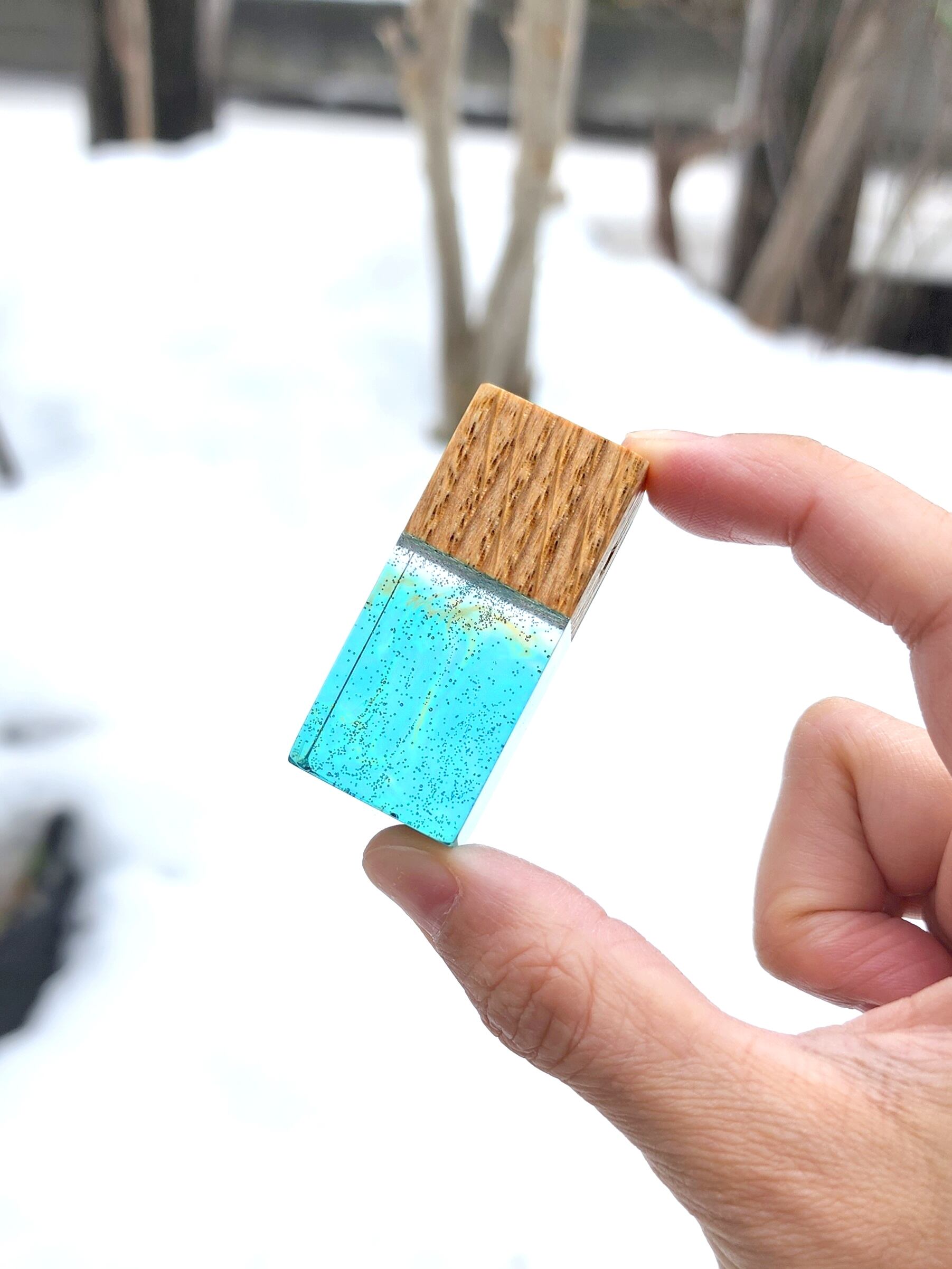 樹木とレジンという樹脂を組み合わせた物で、樹木の種類やレジンのカラーの組み合わせ等、アレンジ次第で様々な物が制作できます