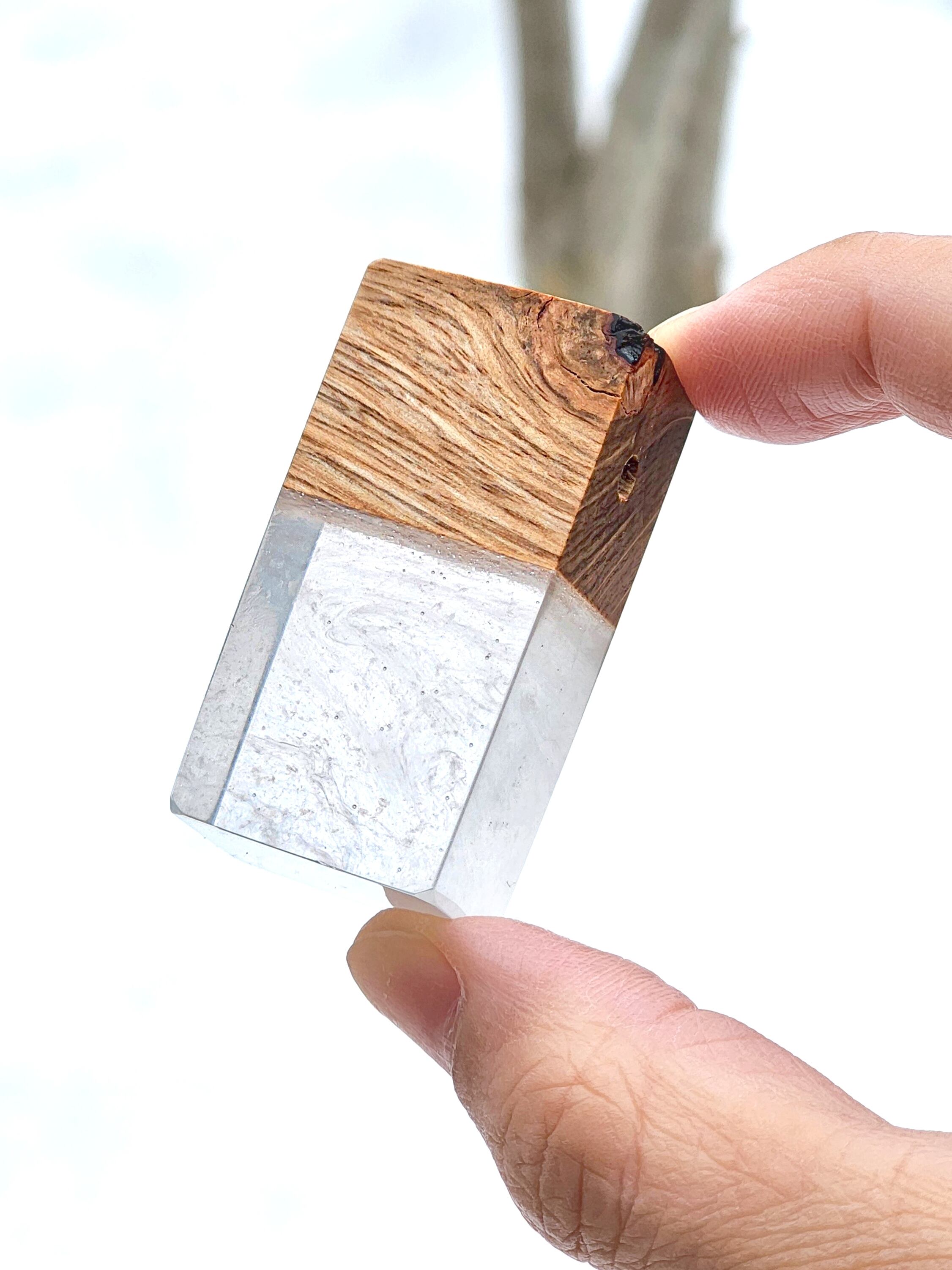 【一点物】ナラの木のウッドレジンペンダント(四角白)