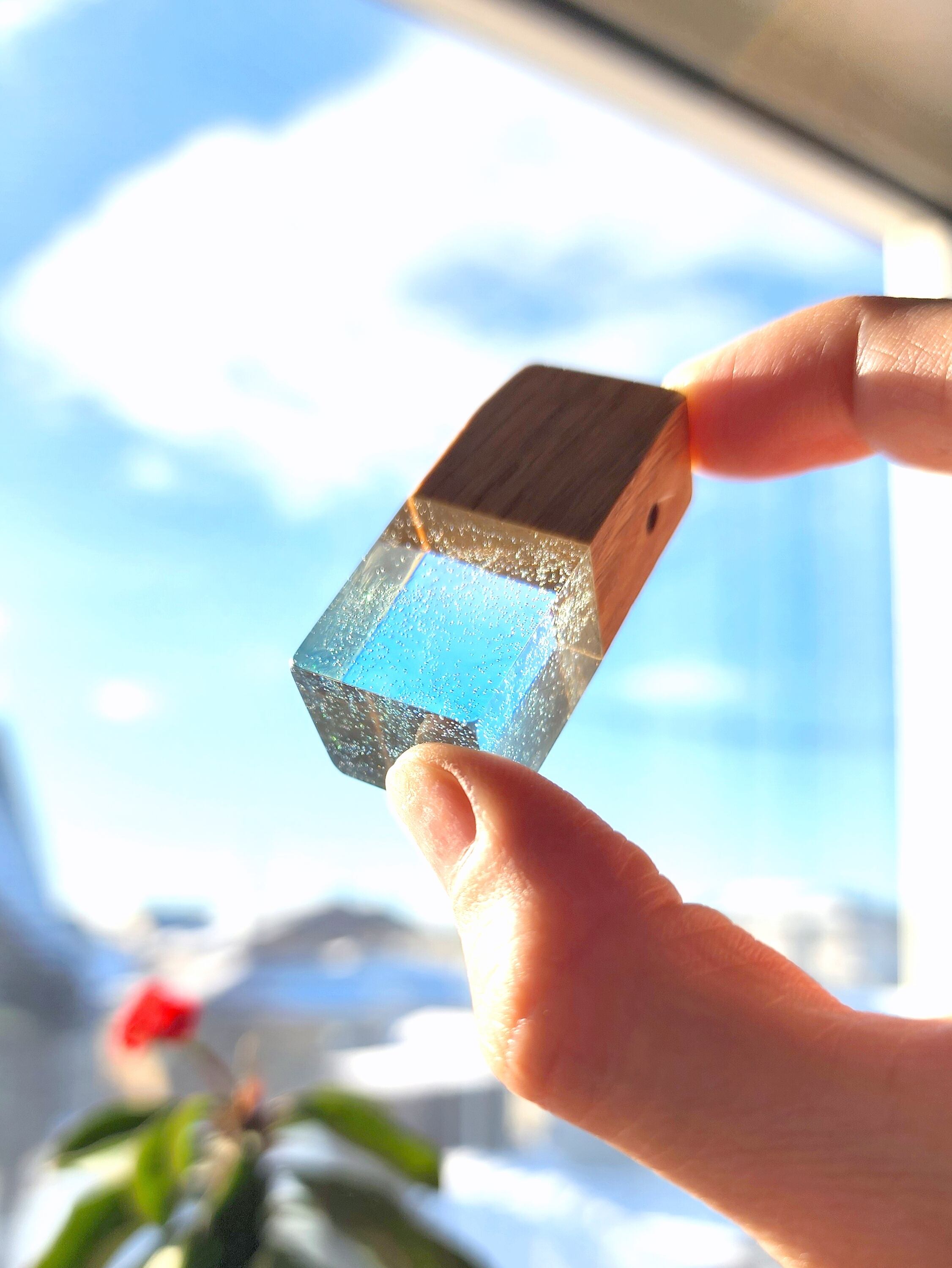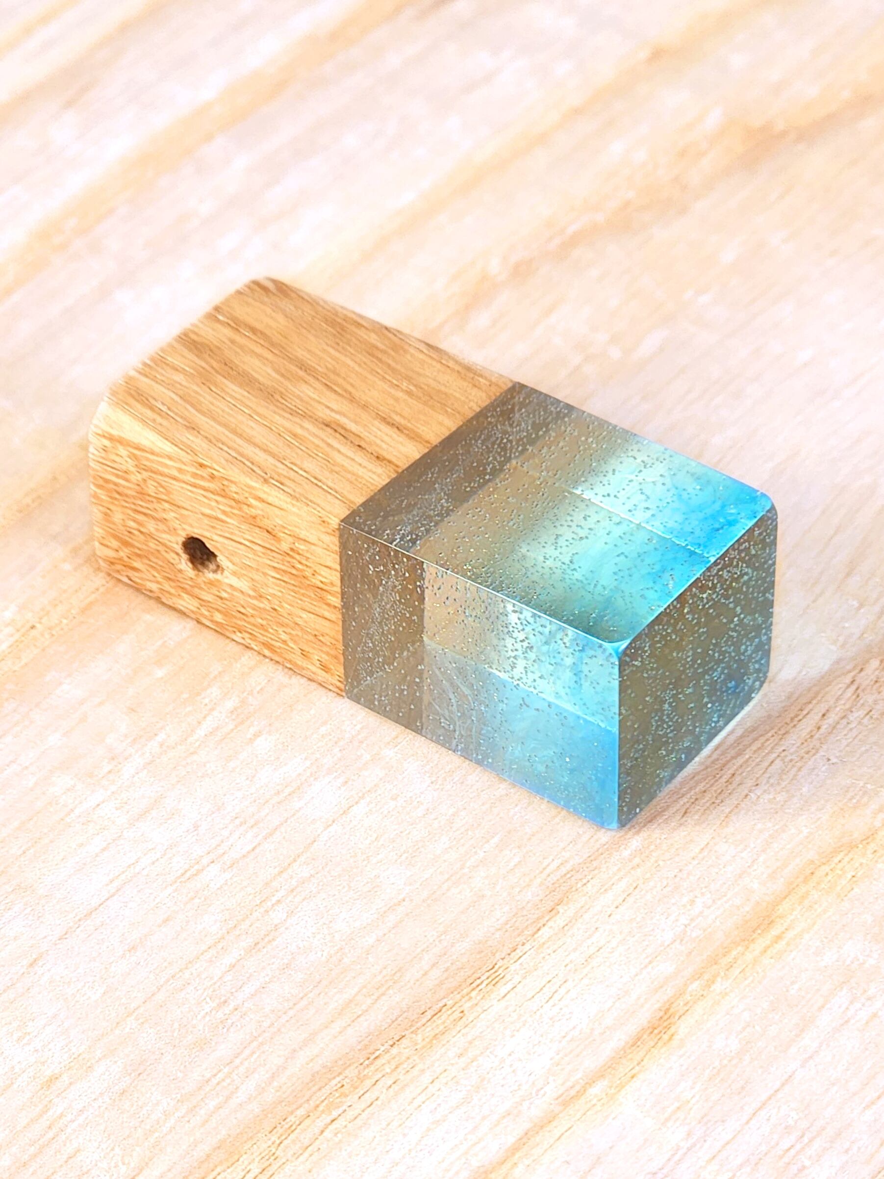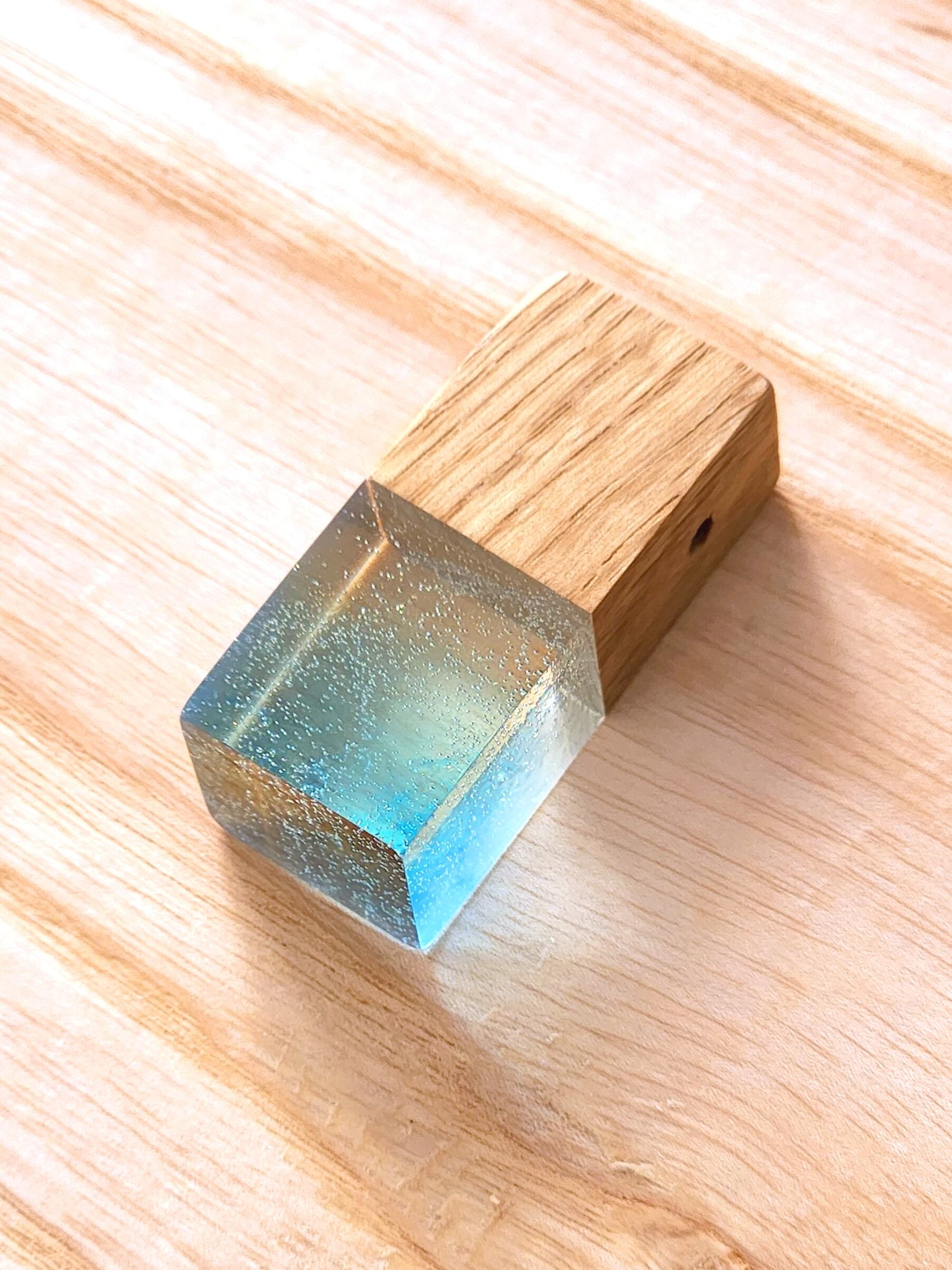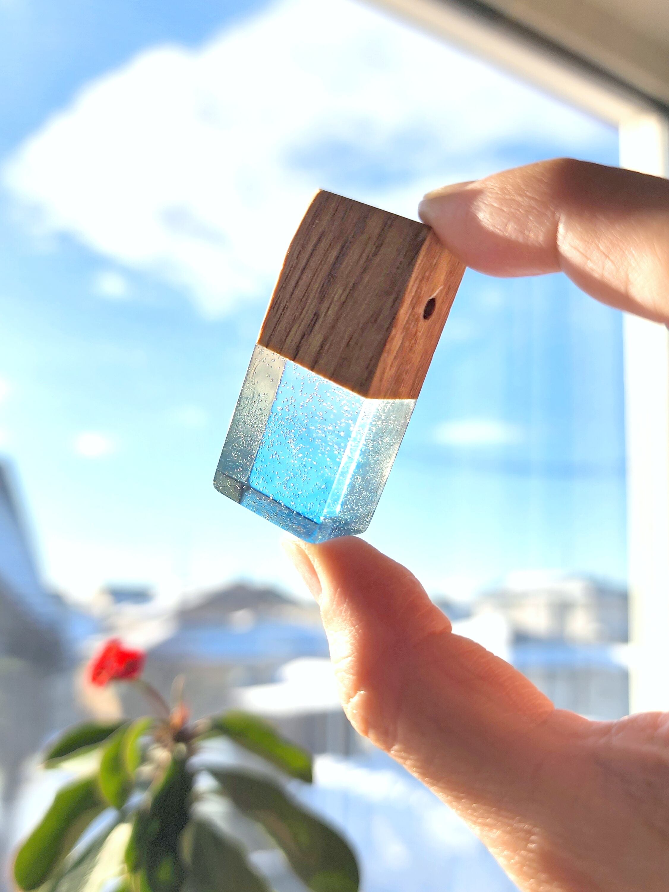 【一点物】ナラの木のウッドレジンペンダント(水色)