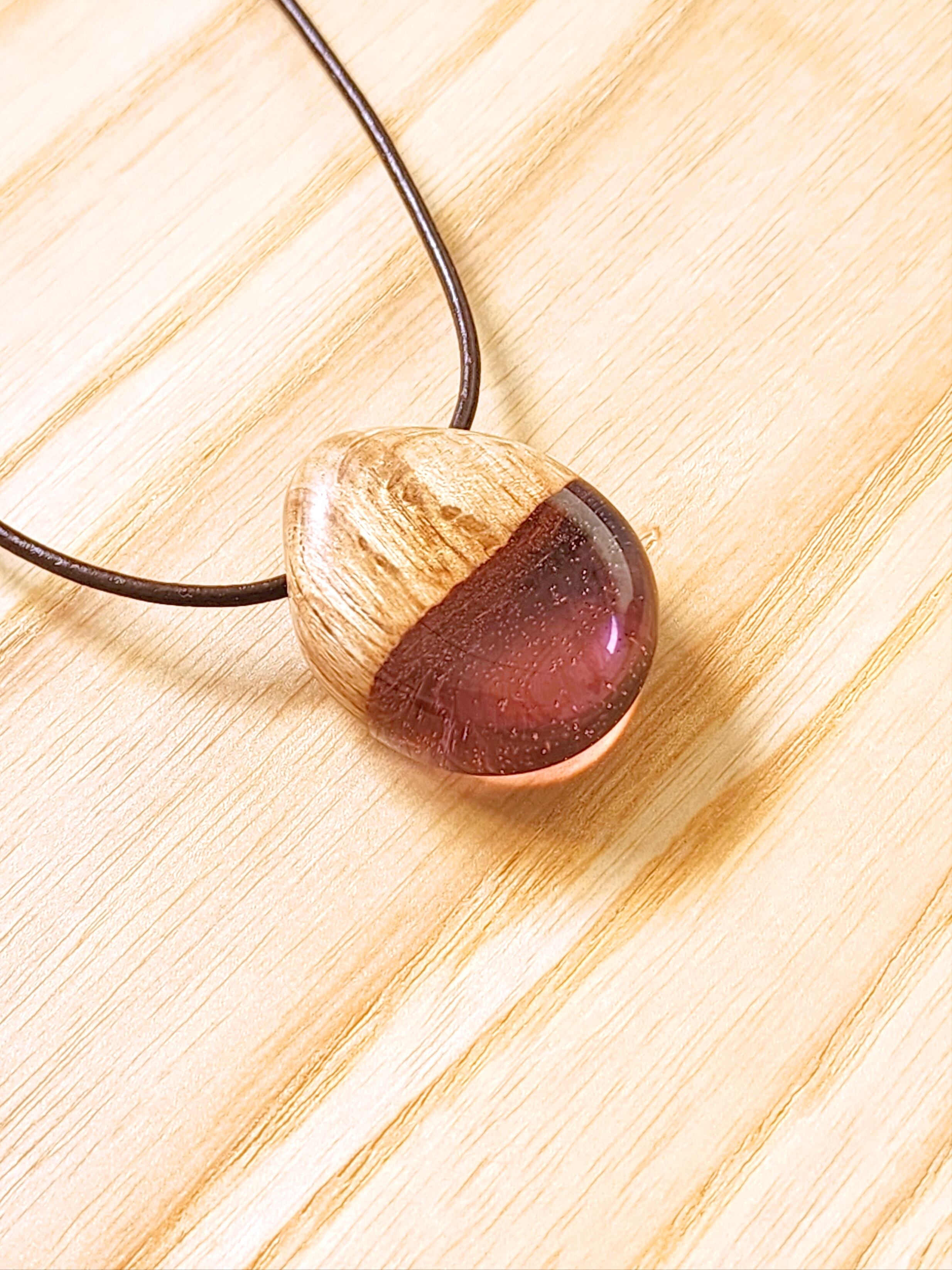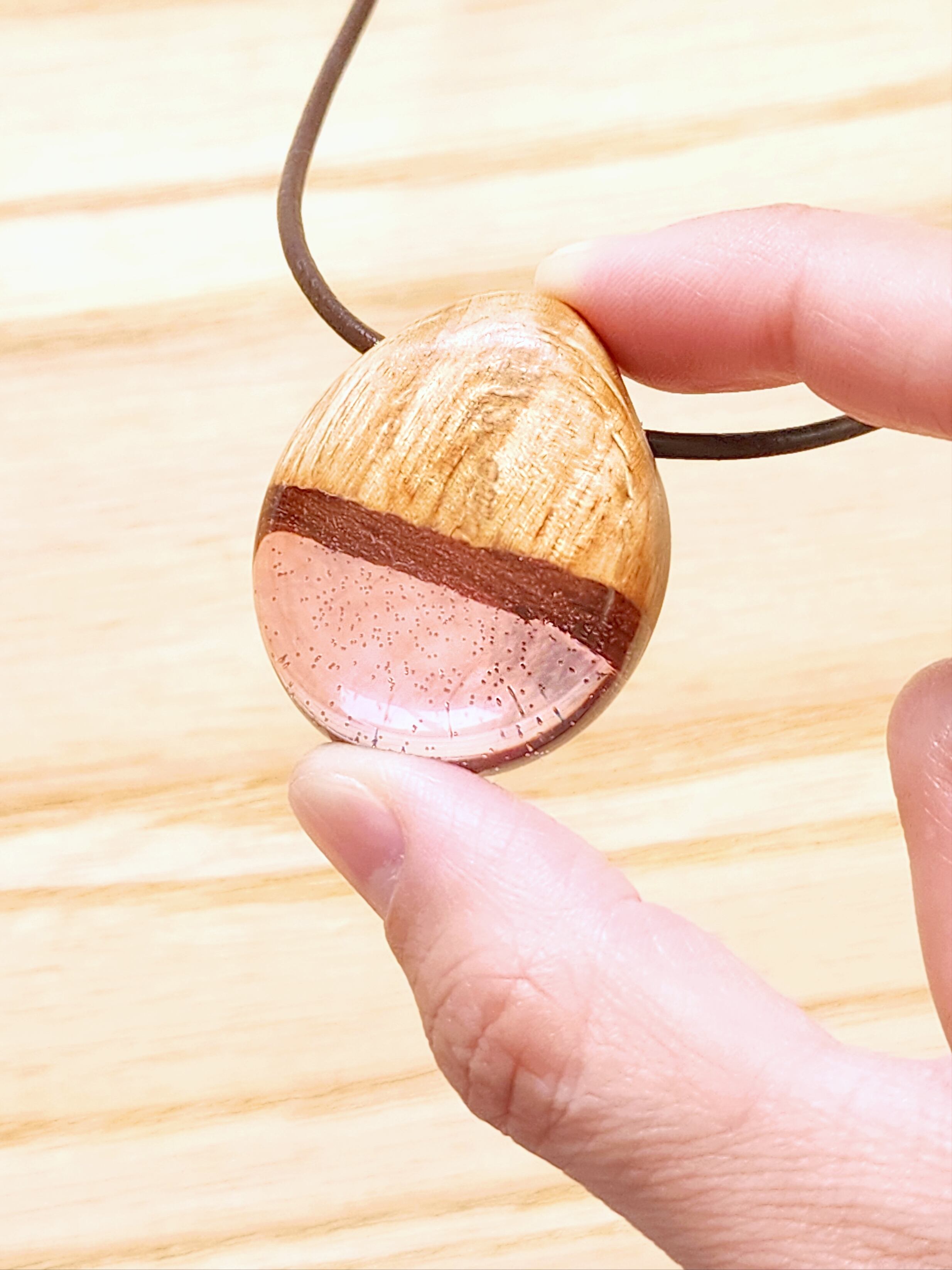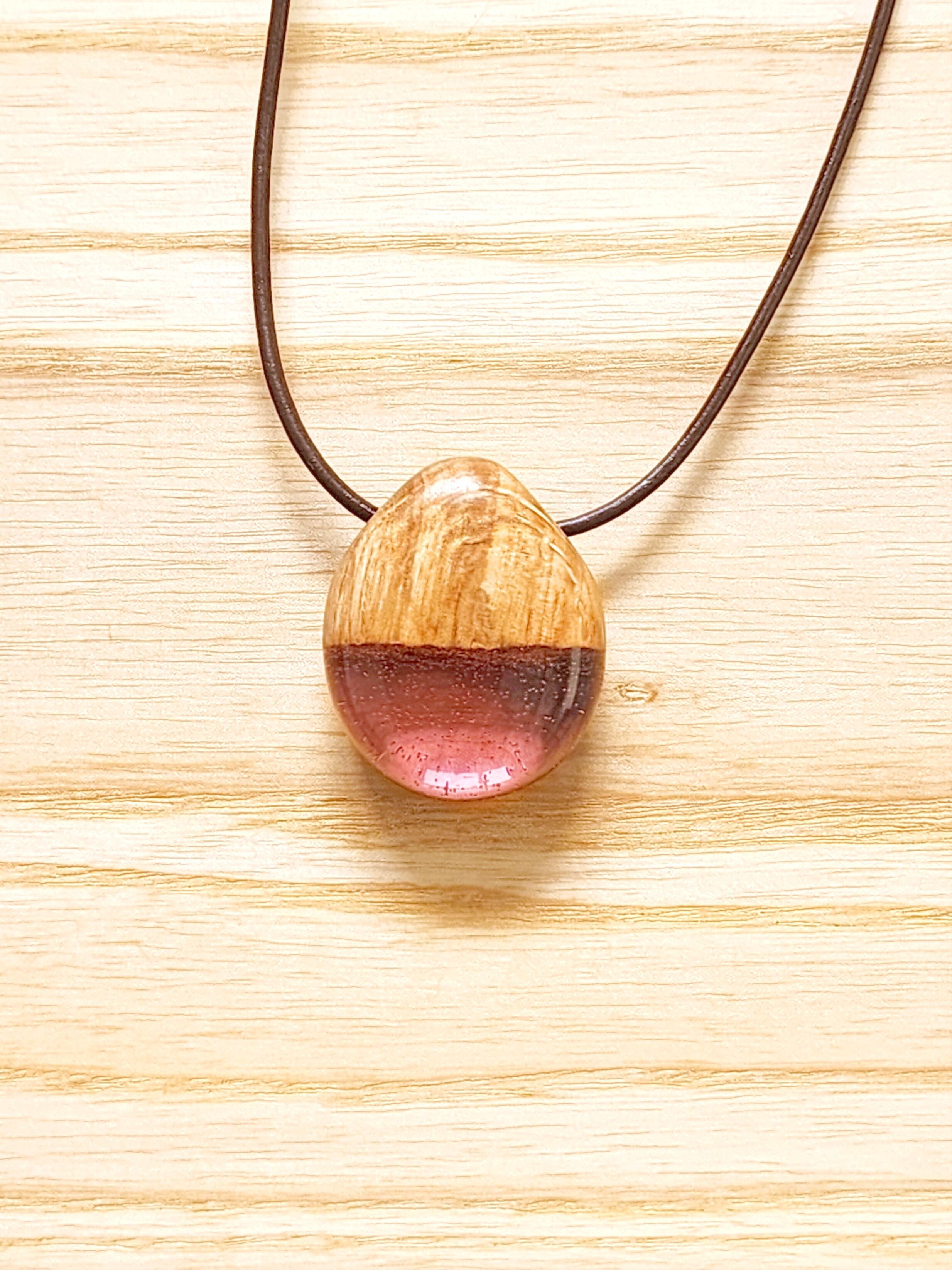 【一点物】ナラの木のウッドレジンペンダント(桃)