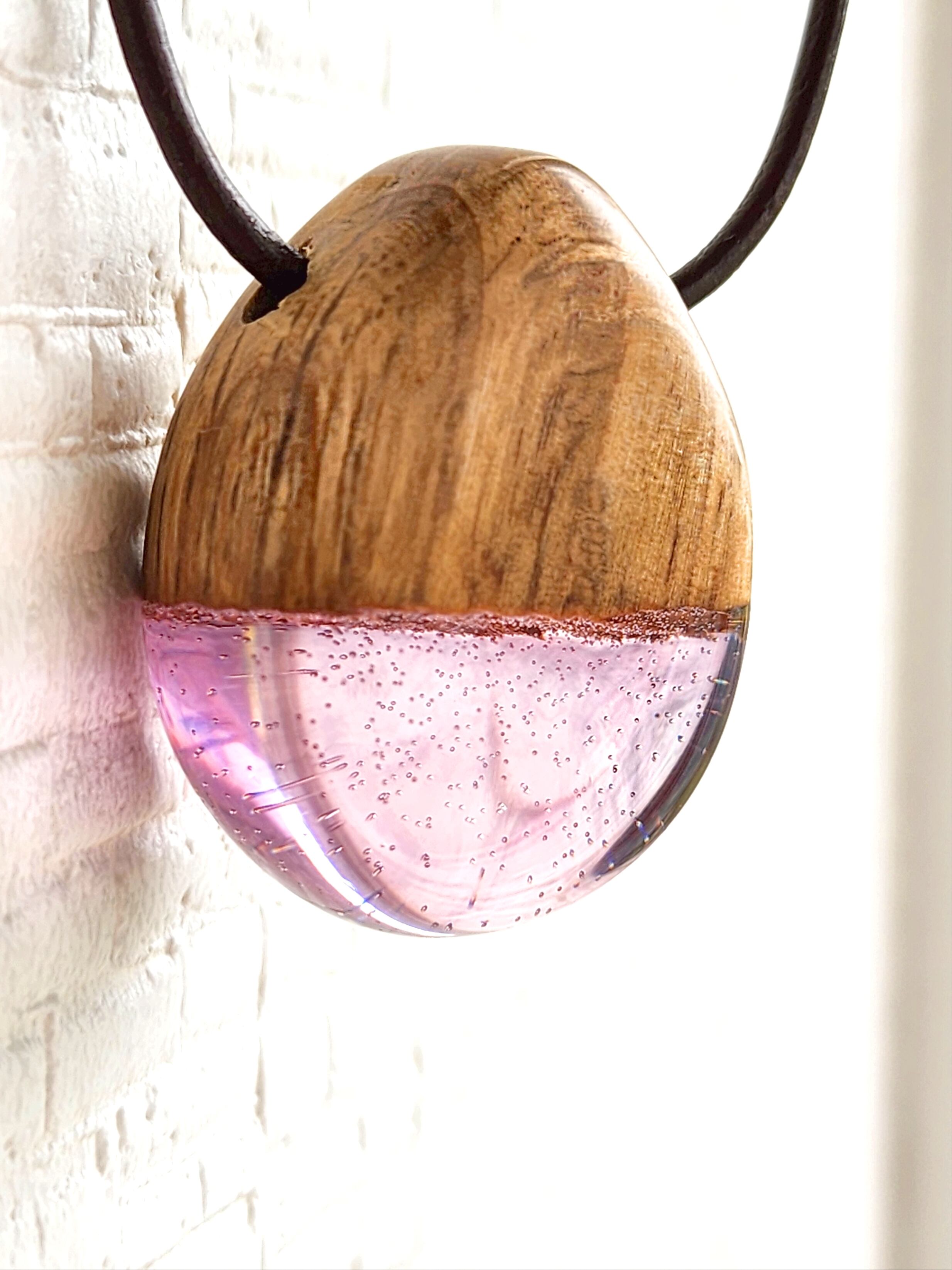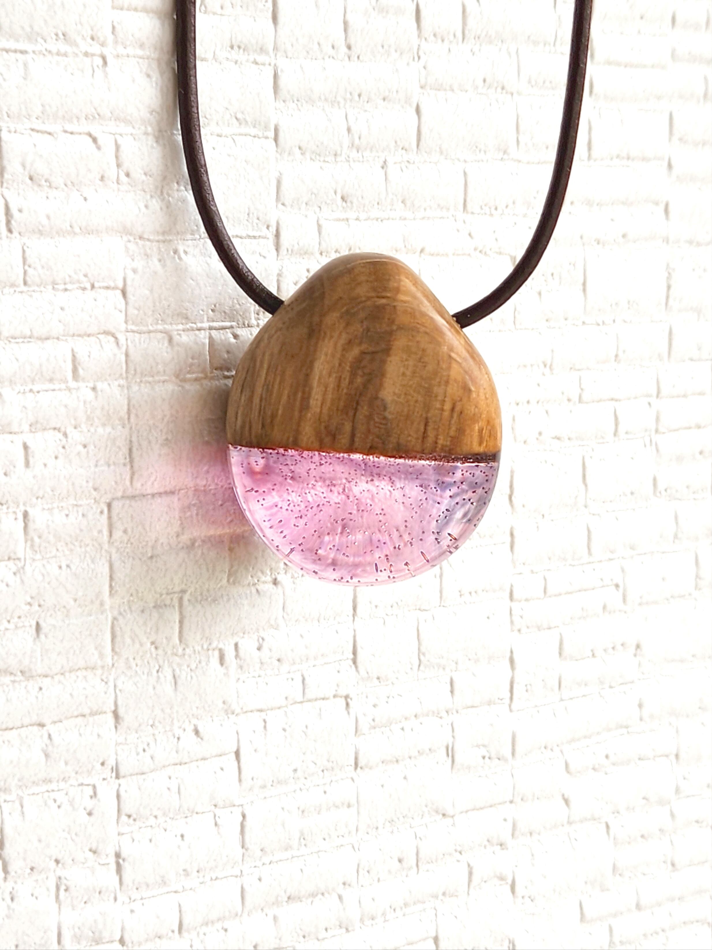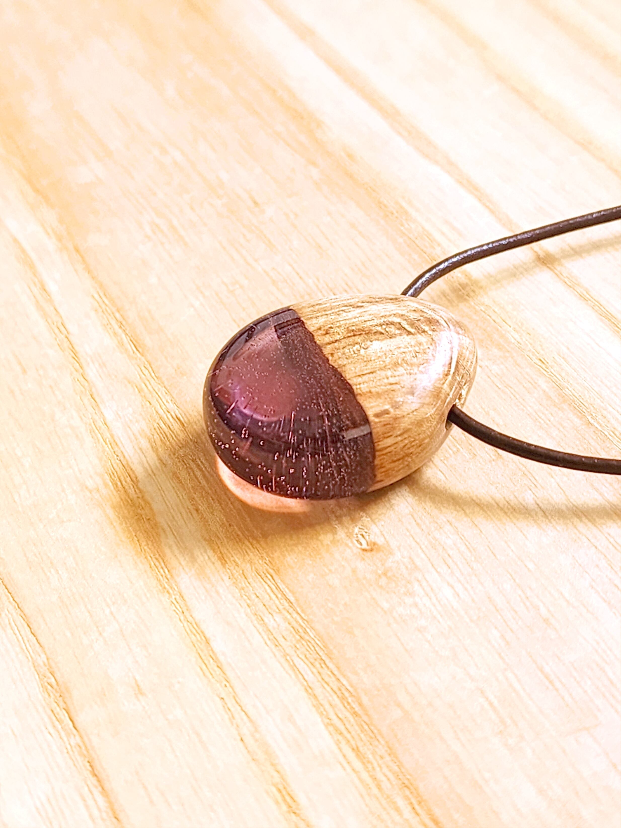 【一点物】ナラの木のウッドレジンペンダント(桃)