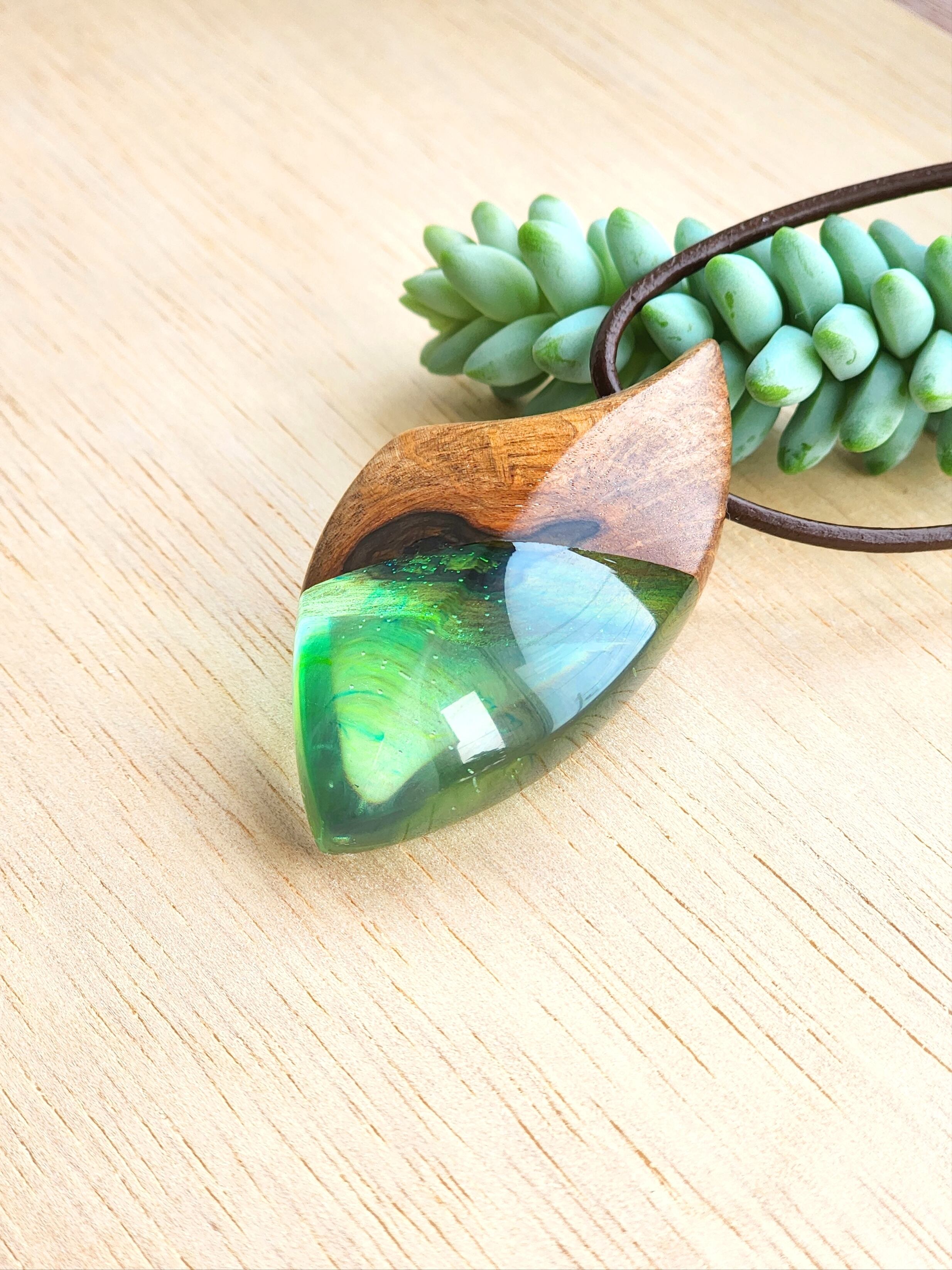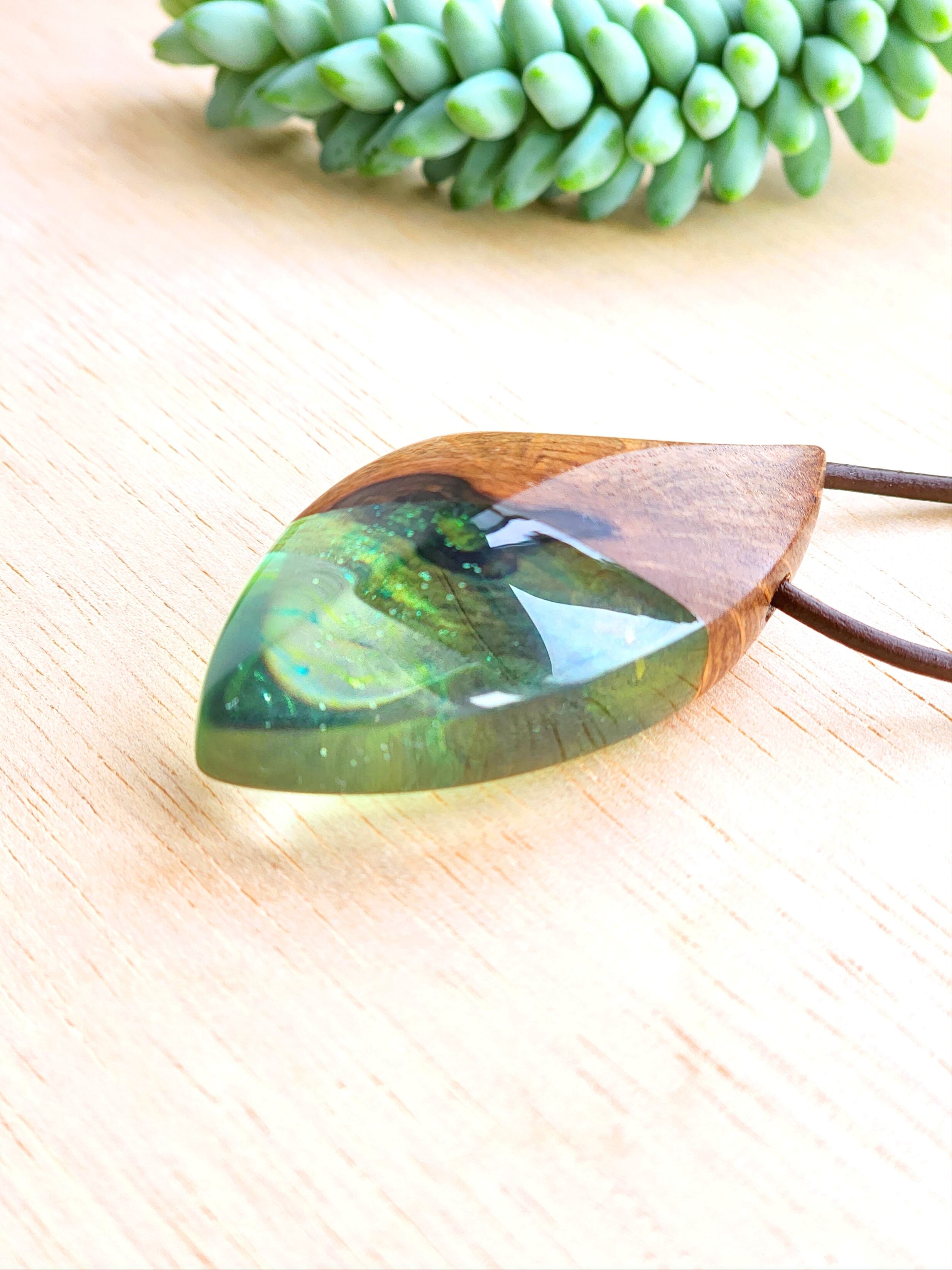 【一点物】山桜のウッドレジンペンダント(緑)